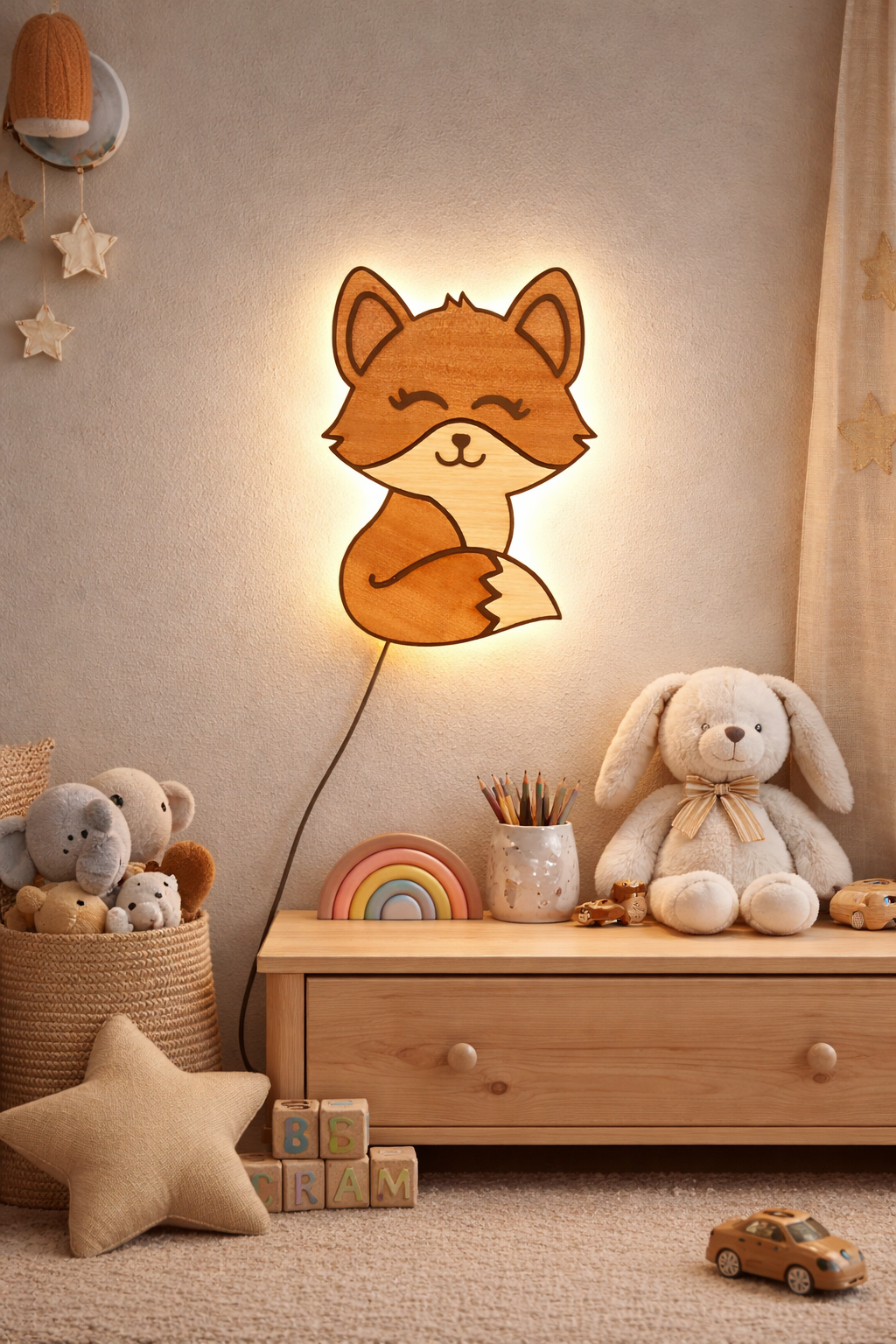 Breng een vleugje magie en warmte in de kinderkamer met onze schattige nacht wandlamp in de vorm van een lief vosje